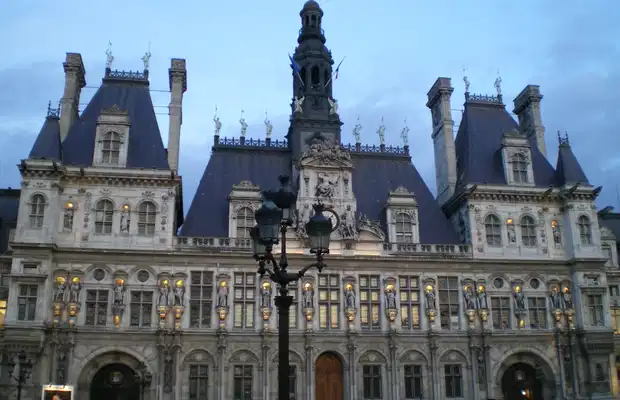 The Hotel de Ville is in the place of the same name, between the Seine and the rue Rivoli, it's a reconstruction of the original that burned down in 1871. It's facade has sculptures of famous French men (Voltaire, Rousseau, Charles Perrault, Jean-Baptiste Pigalle, etc.) as well as 30 French cities.