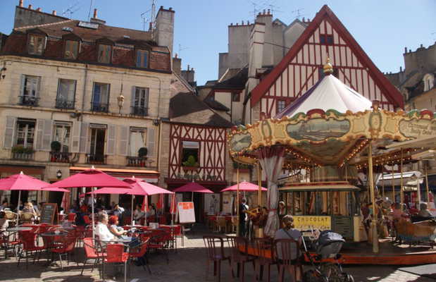 This place is also known as Bareuzai Square, and is a central point in the medieval center of Dijon. The surrounding streets are pedestrian, and it is a very pleasant place to take a stroll, or have a drink. The Moulin A Vent is a very good restaurant in the square which was built in a love old house. I like the outsides of the houses which have wooden pillars which gives them a special charm. The name represents the child Bareuzai, which can be found in the center of the square, who squeezes grapes to make wine. It is a bronze statue that was constructed in the square to commemorate good wine.