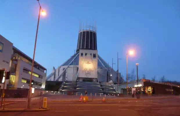It is curious to see Liverpool from above. Hope Street, the two cathedrals in the city that are almost facing each other as if in competition. The Roman Catholic Cathedral (Liverpool is one of the English cities with the highest number of Catholics) is surprising for tourists, probably sue to its circular shape quite different from other European cathedrals. It reminded me of Rio de Janeiro. It seems that when construction started, they intended it to be a huge building, even bigger than St. Peter's Basilica. But the war and the economic crisis paralyzed the building process. It was finished in