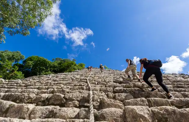 It's certainly not the most famous Mayan pyramid, that would be Chichen Itza, but it's certainly the highest in the Yucatan peninsula, with its 120 steps and 42 m height. Nohoch Mul in Mayan means "Great Mound". It was built during the Early Classic period (200-600 AD), probably to commemorate the sacred power of the rulers of Coba and to serve as a final resting place for some of the members of that lineage. This pyramis impressed me a lot for 2 reasons; 1-it is nestled in the forest and 2-it hasn't been rebuilt like Chichen Itza has, so it makes it feel a lot older, you feel transported into