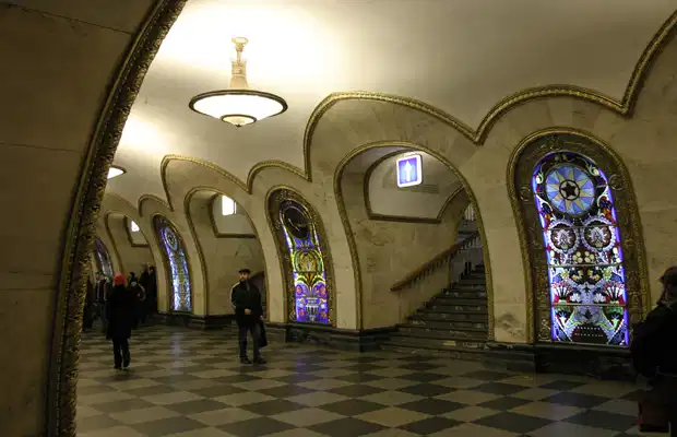 Novoslobodskaya is a very beautiful and historic station decorated with beautiful stained glass ornaments and monumental chandeliers. I'd go ahead and define it as a true work of art, in fact. The surrounding area isn't particularly interesting, but the station is probably the most beautiful in Moscow.