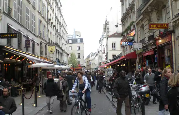 Rue de Buci is in the sixth district of Paris, on the Left Bank. Parisians generally make the difference between the left bank (more bohemian) and the right (more serious, for business and shopping). It is reached by the Odeon metro, Saint Germain des Pres or walking a bit from Saint Michel. It was named in honor of Simon de Buci, who was the first president of the parliament of Paris in the fourteenth century. It's a half pedestrian street, with dozens of small cafes, which leads to the Place Saint Michel. First are crêperies and kebab restaurants, then the street becomes more luxurious with old Parisian cafes, trendy bars for Sunday brunch or a Saturday night drink.