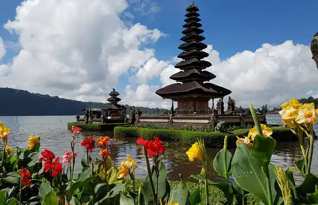 Bratan Lake is situated in the central highlands of Bali, at around 1200 meters above sea level. The temperature in this area is low, and it is often cloudy and there is a lot of moisture, so it is best to go with some warm clothes, but this is what the guides advice, and when I went it was actually quite warm. It was constructed in 1634 in honor of the goddess of water and fertility Dewi Danau. It is a beautiful temple of worship for Hindus and Buddhist, it is one of the most picturesque temples on the island. There are always people making offerings there, as well.
